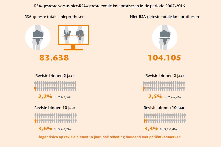 Revisierisico op lange termijn van RSA-geteste versus niet-RSA-geteste totale knieprothesen