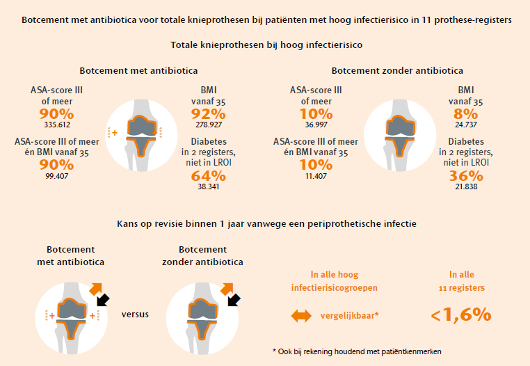 Hoe zinvol is antibiotica in botcement bij totale knieprothesen voor patiënten met een hoog infectierisico?