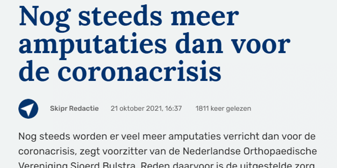 Bericht op Skipr: Nog steeds meer amputaties dan voor de coronacrisis