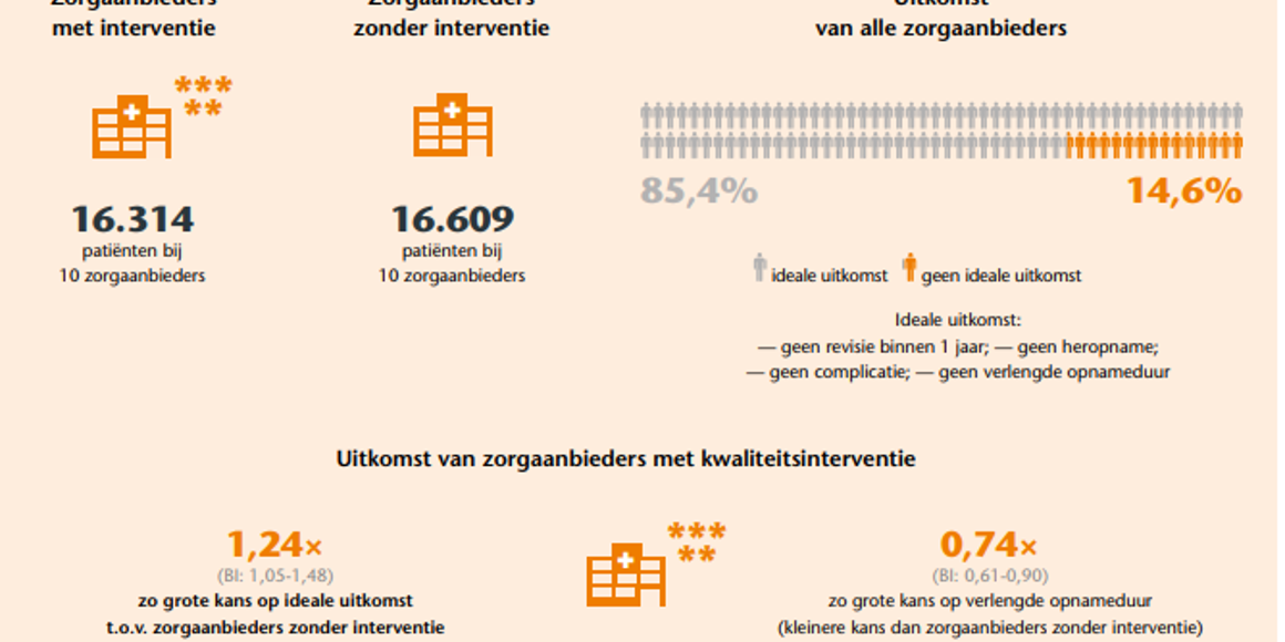 Het onderzoek is gefinancierd met LROI-subsidie en uitgevoerd met LROI-data door Peter van Schie, Leti van Bodegom-Vos, Tristan Zijdeman, Rob Nelissen en Perla Marang-van de Mheen. Zij concludeerden dat een kwaliteitsinterventie – maandelijks feedback met educatie over de interpretatie en een toolbox met verbeterinitiatieven – om de kwaliteit van orthopedische zorg rond totale heup- en knieprothesen te verbeteren leidt tot een verbetering van de uitkomsten voor de patiënt. Deze verbetering werd mogelijk veroorzaakt doordat bijna alle zorgaanbieders met interventie gerichte initiatieven implementeerden voor het verbeteren van de kwaliteit van orthopedische zorg. Deze kwaliteitsinterventie kan dienen als een model voor toekomstige verbeterinitiatieven.
