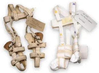 Een Pavlik-bandage van vroeger en van nu.6De man