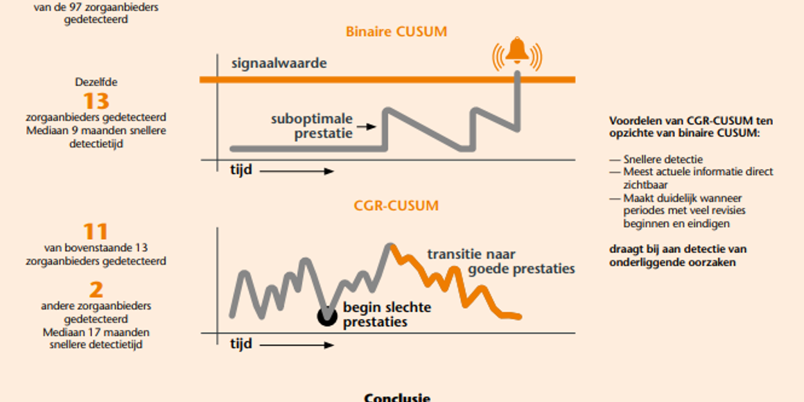 Het onderzoek is uitgevoerd met LROI-data door Daniel Gomon, Hein Putter, Rob Nelissen en Stéphanie van der Pas. Zij concludeerden dat het met de CGR-CUSUM mogelijk is om continu de kwaliteit van geleverde zorg te monitoren, waarbij de meest actuele informatie direct zichtbaar is. Daarnaast is het niet nodig om van tevoren vast te stellen wat de verwachte toename in het aantal revisies zal zijn bij suboptimaal presterende zorgaanbieders. Dit zorgt niet alleen voor veel snellere detectie van problemen, maar brengt ook onderliggende oorzaken voor de toename in revisies aan het licht.