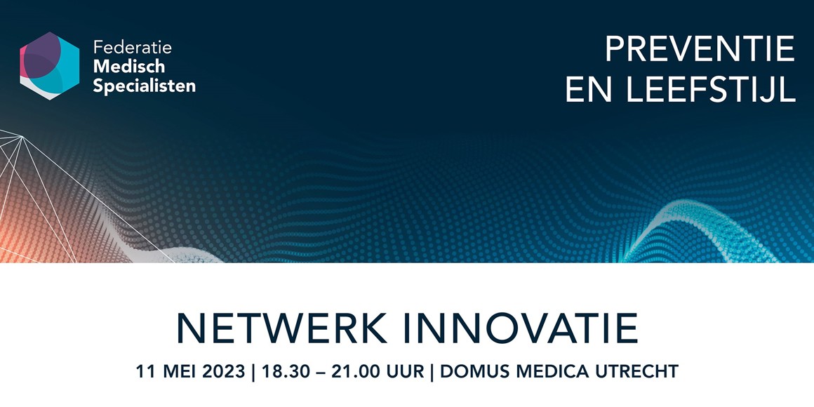 Op donderdag 11 mei 2023 organiseert de Federatie Medisch Specialisten het Netwerk Innovatie van 18.30 - 21.00 uur in de Domus Medica in Utrecht (inloop met buffet vanaf 17.30 uur). Het thema van deze avond is Preventie en leefstijl. De druk op de zorg neemt steeds meer toe en preventie draagt bij aan toegankelijke en betaalbare zorg. Want voorkomen is natuurlijk beter dan genezen. Ook medisch specialisten hebben hier steeds meer aandacht voor en delen tijdens deze bijeenkomst hun innovatieve initiatieven op dit gebied. Er zijn geen kosten verbonden aan deelname.