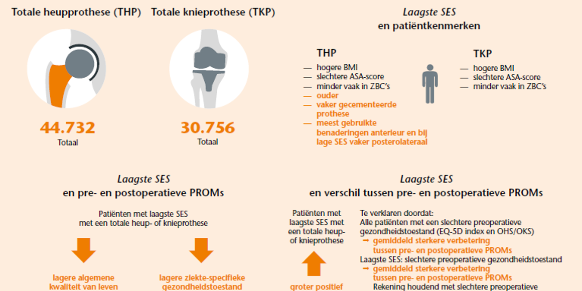Het onderzoek is uitgevoerd met LROI-data door Joshua Bonsel, Max Reijman, Jan Verhaar, Liza van Steenbergen, Mathieu Janssen en Gouke Bonsel. Zij concludeerden dat patiënten met een totale heup- of knieprothese met de laagste socio-economische status (SES) preoperatief de slechtste zelf-gerapporteerde gezondheidstoestand hadden. Dit zette door in een gemiddeld verminderd herstel. Dit nadelige effect van SES was op elk meetmoment ongeveer net zo groot als het hebben van een Charnley score C: meerdere gewrichten aangedaan of verminderd kwaliteit van leven door artrose. Vervolgonderzoek moet aantonen of het verschillend gebruik van benadering en wel of niet gebruik van cement naar SES bij patiënten met een totale heupprothese dit effect kan verklaren.