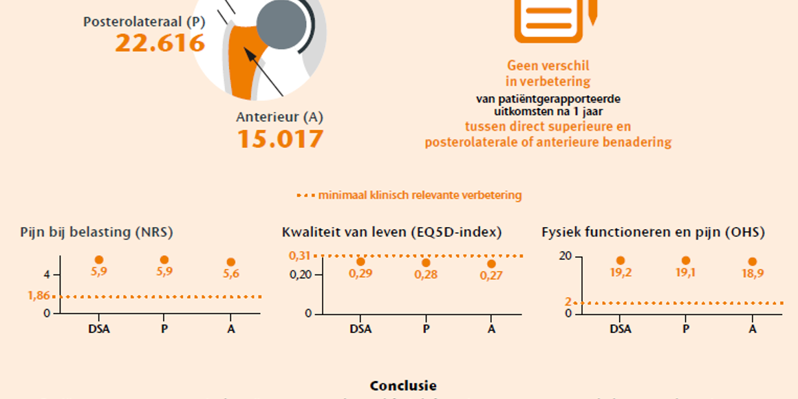 Het onderzoek is uitgevoerd met LROI-data door Bart van Dooren, Rinne Peters, Liza van Steenbergen, Richard Post, Harmen Ettema, Stefan Bolder, Wim Schreurs en Wierd Zijlstra. Zij concludeerden dat patiënten minder pijn en een verbeterd fysiek functioneren rapporteren na een totale heupprothese-ingreep. Er lijken geen klinisch relevante verschillen te zijn in patiëntgerapporteerde uitkomsten tussen DSA en zowel posterolaterale als anterieure benadering. De orthopedisch chirurg moet dan ook voorzichtig zijn met het aanbevelen van een specifieke chirurgische benadering op basis van patiëntgerapporteerde uitkomsten. De keuze voor een chirurgische benadering moet gebaseerd zijn op meerdere factoren, zoals de medische geschiedenis van de patiënt, lichaamsbouw, de complexiteit van de ingreep, de ervaring van de chirurg en een afweging van de risico’s en voordelen van elke benadering.