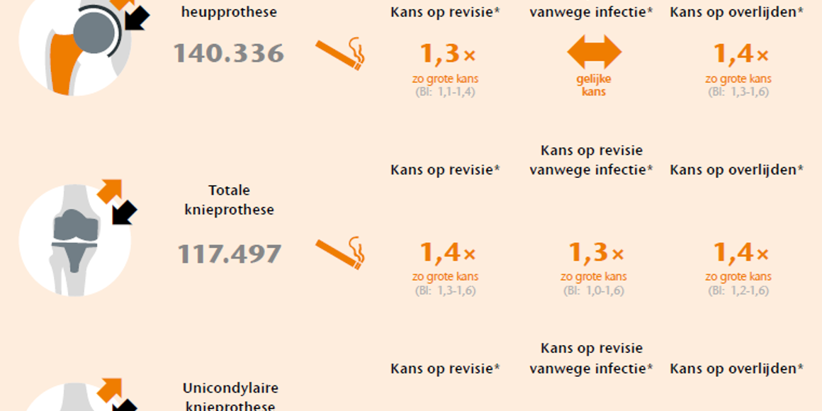 Rokers hogere kans op revisie of overlijden binnen 2 jaar na heup- of knieprothese