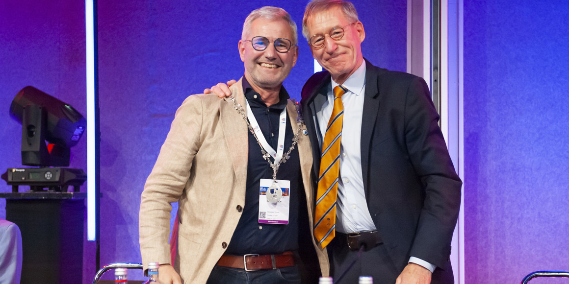 Tijdens de Algemene Ledenvergadering op 13 juni jl. droeg Jan Willem Louwerens de voorzittersketting en hamer over aan Jacob Caron die de komende twee jaar NOV-voorzitter zal zijn.