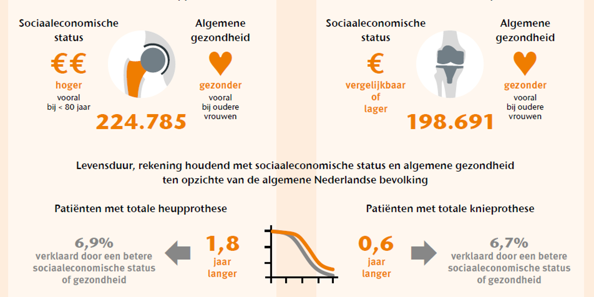 Het onderzoek is gefinancierd met LROI-subsidie en uitgevoerd met LROI-data door Jan Heijdra Suasnabar, Maaike Gademan, Liza van Steenbergen, Ewout Steyerberg, Rob Nelissen en Wilbert van den Hout. Zij concludeerden dat dit onderzoek bevestigt dat Nederlandse mensen met artrose na een totale heup- of knieprothese gemiddeld langer leven dan de algemene bevolking. Sociaaleconomische status en algemene gezondheid dragen hieraan bij, maar verklaren slechts een klein deel van het verschil. Verder onderzoek naar onder andere leefstijl en beweging is nodig om meer inzicht te krijgen in hoeverre deze factoren meespelen. Het langer leven na een prothese wijst op verschillen tussen mensen die wel en geen operatie krijgen. De precieze oorzaak is onduidelijk, maar het is belangrijk dat zorgverleners de criteria voor het krijgen van een heup- of knieprothese kritisch bekijken.
