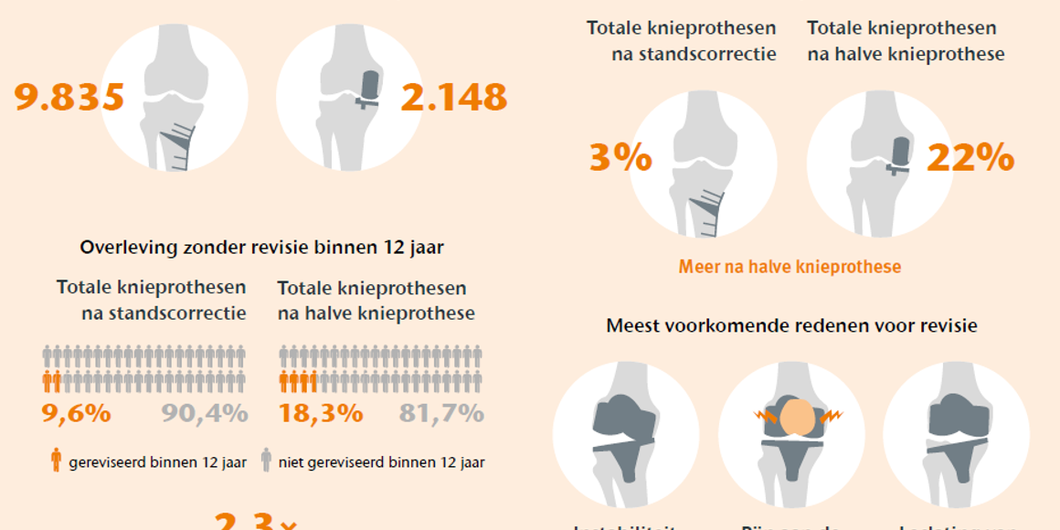 Het onderzoek is uitgevoerd met LROI-data door Maarten Huizinga, Astrid de Vries, Liza van Steenbergen en Reinoud Brouwer. Zij concludeerden dat een totale knieprothese na een eerdere halve knieprothese (unicondylaire knieprothese) vaker complexer is en minder lang meegaat dan een knieprothese na een standscorrectie (hoge tibia osteotomie). Deze informatie is belangrijk bij de keuze voor een eerste operatieve behandeling bij artrose aan één kant van de knie, vooral bij jongere en actieve patiënten.