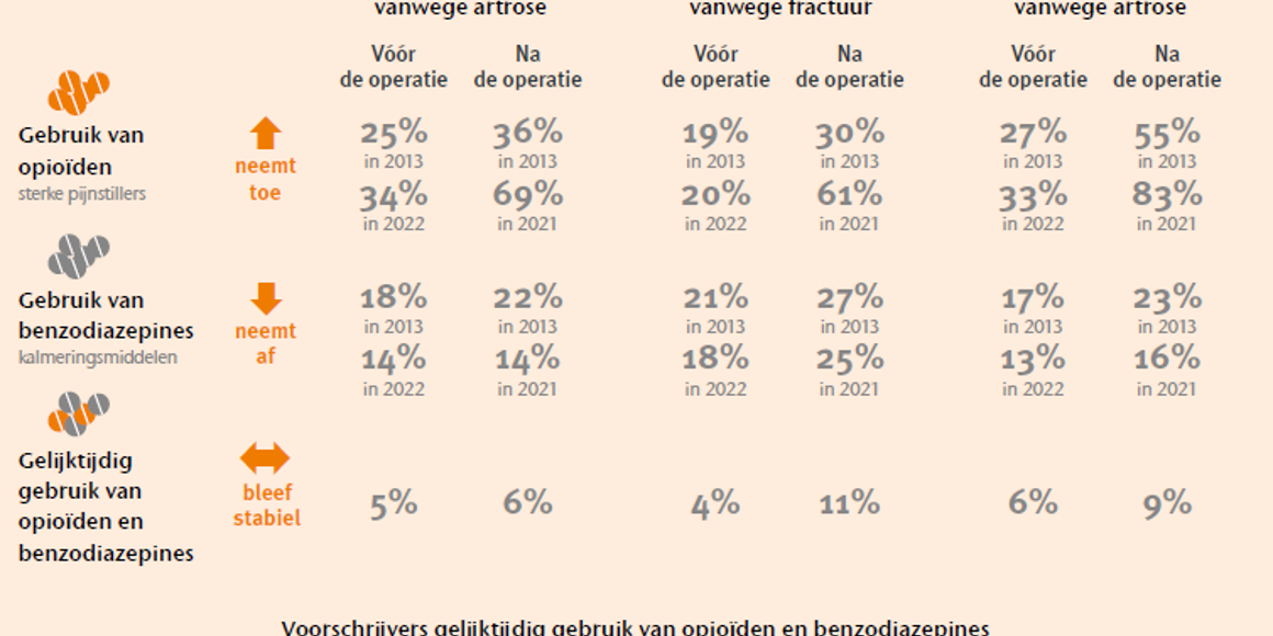 Trends in gebruik van opioïden en benzodiazepines na een heup- of knieprothese
